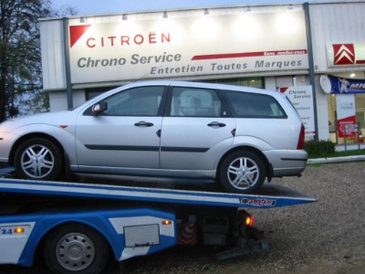 Tras confirmarse la rotura del manguito, la grúa nos llevó a un concesionario Citroën – El “Garage Ducasse” – por si allí podían hacerse cargo de la reparación, ya que los concesionarios Ford no abrían en sábado. En estos casos es cuando uno agradece hablar la lengua de Molière, porque verdaderamente facilita mucho las cosas...