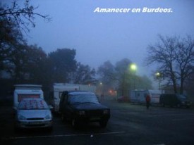 Gonzalo se quedó guardando las caravanas con las niñas y Manolo y Pili se vinieron con nosotros por si teníamos que dejar el coche en el taller hasta el lunes. En ese caso, hubiéramos acampado en el camping de Gradignan, a las afueras de Burdeos y el vino caliente nos lo hubiéramos tomado en el mercadillo de la ciudad, pero no hizo falta.