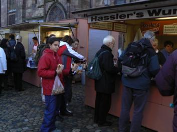 Y así lo hicimos. Degustamos varias especialidades –lo bueno de ir en grupo es que se pueden probar muchas más cosas sin gastar más por ello, “economía de escala” lo llaman. Recorrimos el resto del gran mercado navideño y reservamos mesa para cenar, al día siguiente, en la cervecería “Martin’s Brau”.