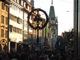 Eran las seis de la tarde, aproximadamente, cuando tuvimos que decidir qué hacer. La posibilidad de regresar a Schaffhausen, para darle una vuelta no nos convenció, pues a esas horas la ciudad estaría ya desierta. Por eso optamos por ir aún un poco más lejos y acercarnos a Konstanz, la ciudad alemana a orillas del Bodensee o Lago Constanza. Nos convenció la idea de que los horarios tardíos alemanes nos permitieran rematar la faena cenando en el mercadillo navideño local. ¡Teníamos “mono” de mercadillo después del fiasco de Stein!