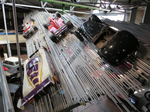 A partir de ese punto el visitante puede optar por dirigirse hacia la exposición de turismos y camiones de los años 30 a la década de los 60 o pasar a la zona de los vehículos de competición, entre los cuales destacan -como si en una pista de Scalextric estuviesen- el McLaren MP24 de 2009 (Hamilton), el Ferrari F310 de 1996 (Schumacher) o el Jaguar XJR-12, ganador en 1990 de las 24 horas de Le Mans.