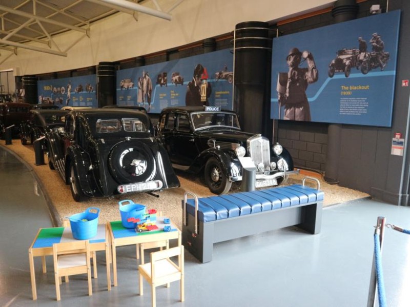 Ciertamente la disposición del museo desconcierta un poco al visitante, pues tras entrar en el museo y visitar la zona circular de los primeros Austin y Morris, el propio museo "invita" a seguir visitándolo tal cual se muestra en este reportaje. Lo que ocurre es que así seguiremos al revés el desarrollo cronológico de los automóviles expuestos junto a los paneles explicativos. Es decir, "avanzaremos" contra el tiempo, para terminar justo cuando empezaban los primeros coches a motor.
