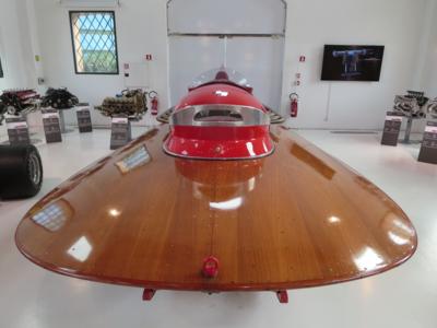 La exposición se termina con un exótico, exitoso y único ejemplar de hidroplano de carreras, el “Timossi-Ferrari Arno XI” de 1953, equipado con un V12 de 4.500 cc. Esta embarcación de competición batió el récord de velocidad ese mismo año, a la friolera de 241,708 km/h, en el lago de Iseo y con Froilán González al volante. Ascari y Villoresi presenciaron la proeza.