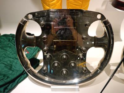 Dejamos atrás la época de los karts y accedemos a la gran sala de la planta baja que expone sus cinco primeros monoplazas, incluido el Renault RS23 de 2003 con el que obtuvo su primera pole position en el GP de Malasia y, por supuesto, la victoria en el GP de Hungría que abrió la lata de triunfos en F1...
