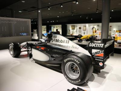A Fernando le gusta también tener en su museo a ilustres "invitados". Si anteriormente estuvo presente el McLaren que Senna hizo campeón, esta vez el turno era para Hakkinen y su MP4-13 que lo coronó, por primera vez, en 1998.