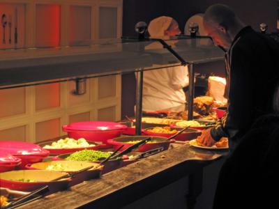 - El “Carvery” (a secas) o “Sunday Carvery” consiste en un plato con varias carnes asadas: rostbeef, pavo, salchichas, pierna de cerdo (Lacón o “Gammon” allí) acompañadas por una guarnición de verduras salteadas o cocidas; patatas (fritas, cocidas o asadas), champiñones, etc. servidos generalmente en “buffet libre”, al igual que una amplia variedad de salsas calientes. También suele incluir un “Yorkshire pudding”. Ese nombre genera algo de confusión porque no se trata de ningún tipo de crema dulce sino de una especie de pan frito, muy ligero con una forma que recuerda vagamente a un “casco”. Las carnes las sirve en el plato un cocinero, pero como ya hemos comentado la guarnición es “all you can eat”.
